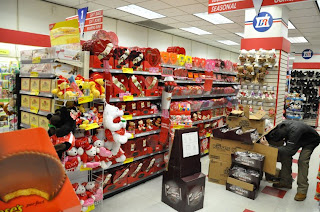 Tankkausta drugstoressa. Valentine's Day suklaat olivat jo 18.1. myynnissä.